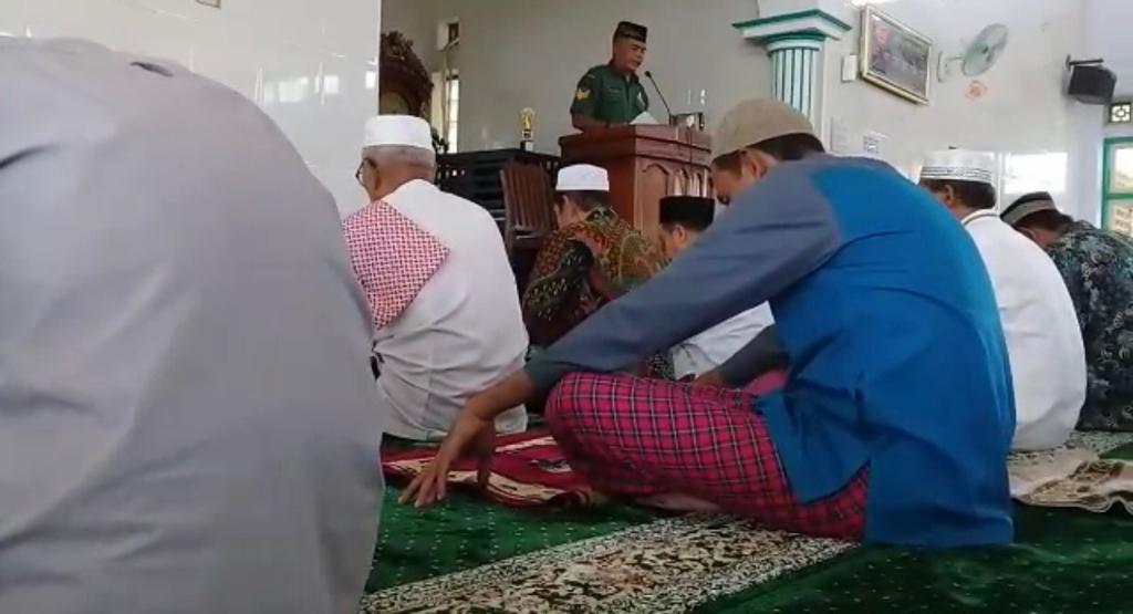 Sumbawa – Bintara Pelatih (Bati) Tuud Koramil 1607-04/Alas Sersan Mayor Ruslan menjadi Khotib Jumat di Masjid Al Falaq Desa Dalam Kecamatan Alas Kabupaten Sumbawa, Jumat (31/1).