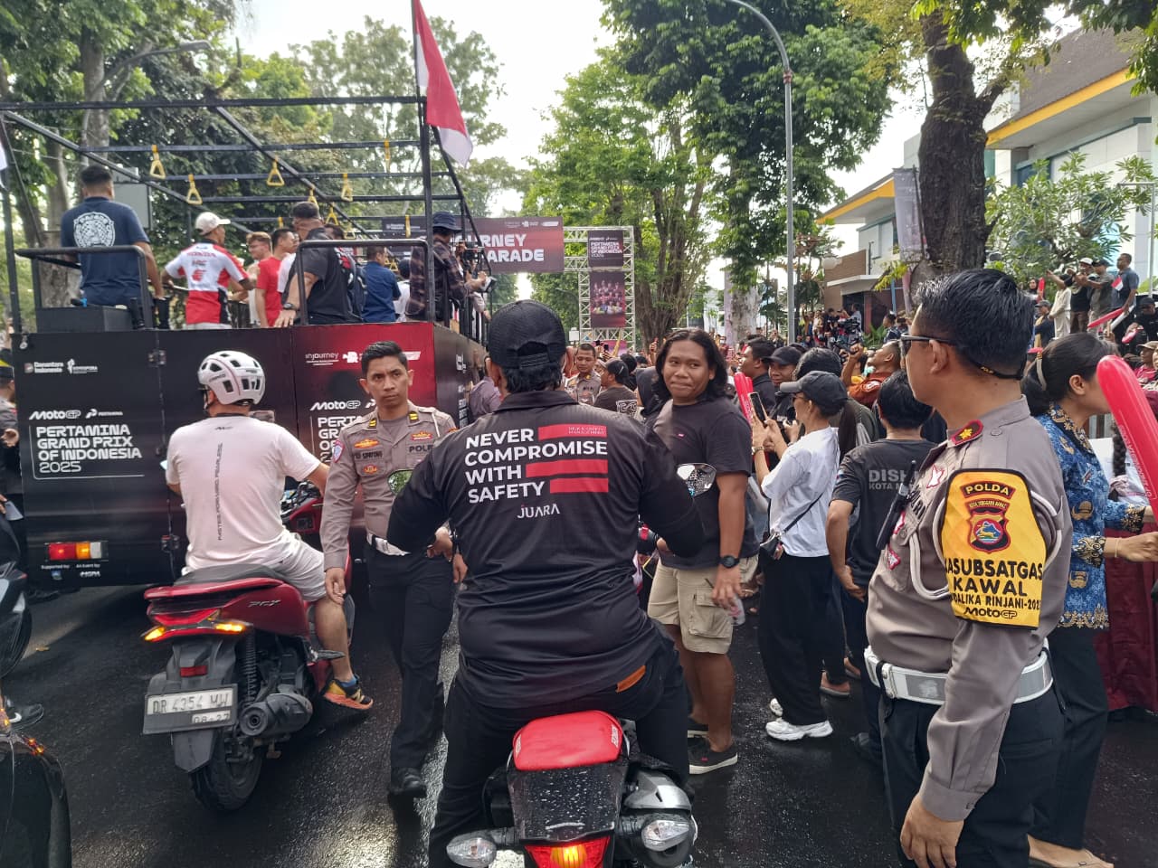 “Kami memastikan Parade Rider MotoGP Mandalika 2025 berjalan aman, tertib, dan lancar. Selain fokus pada pengamanan pembalap, kami juga melakukan rekayasa lalu lintas untuk mengantisipasi kemacetan maupun potensi laka lantas,” ungkap Kompol Bayu Eko.