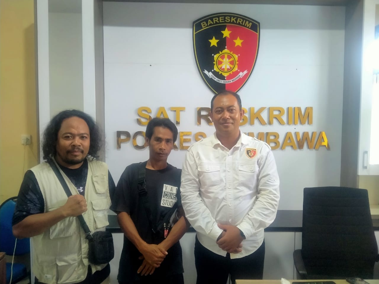 Wartawan Siarpost Biro Sumbawa, Edo MH (kiri) bertemu dengan KBO Reskrim Polres Sumbawa, (24/2/2025). Dok Edo.