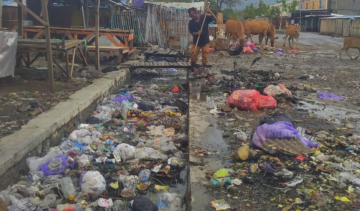 “Tanggapan saya, karena pedagang sering buang di drainase, dan orang jualan sekitar sini juga buang di sini. Dinas Lingkungan Hidup belum pernah turun ke sini,” ungkap Ramli, ASN yang bertugas sebagai Koordinator Lapangan di Pasar Amahami.
