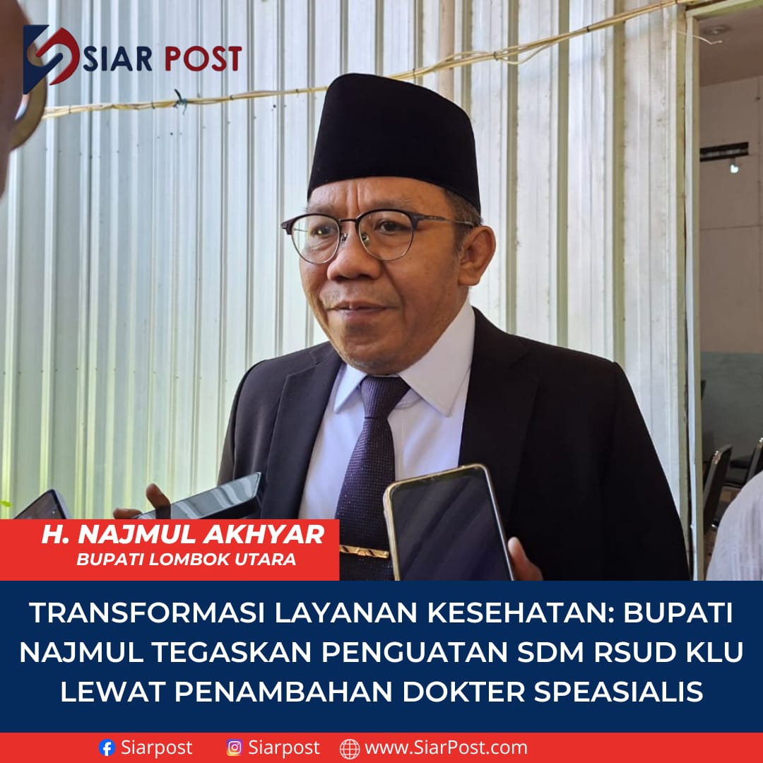 Lombok, Utara | SIARPOST — Upaya transformasi layanan kesehatan di Kabupaten Lombok Utara terus bergerak maju. Dalam peringatan Hari Kesehatan Nasional (HKN) ke-61, Rabu (12/11/2025), Bupati Lombok Utara H. Najmul Akhyar menekankan bahwa peningkatan kualitas layanan harus dimulai dari penguatan sumber daya manusia, khususnya tenaga dokter spesialis di RSUD KLU.