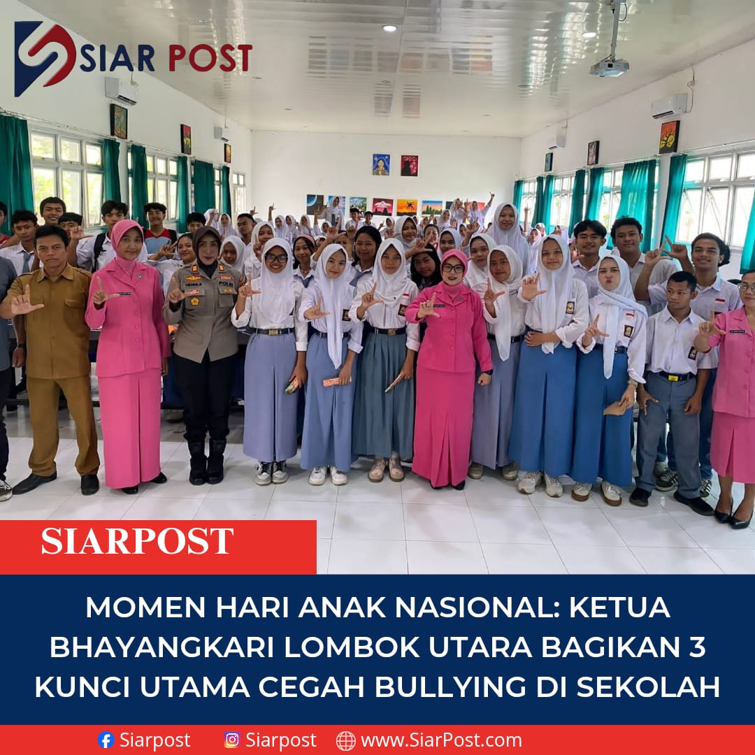 Lombok Utara, SIARPOST – Ketua Bhayangkari Lombok Utara, Ny Heny Agus Purwanta, membagikan tiga saran krusial bagi siswa untuk menghadapi bullying dan menghindari kasus perundungan yang sering meresahkan di lingkungan sekolah.