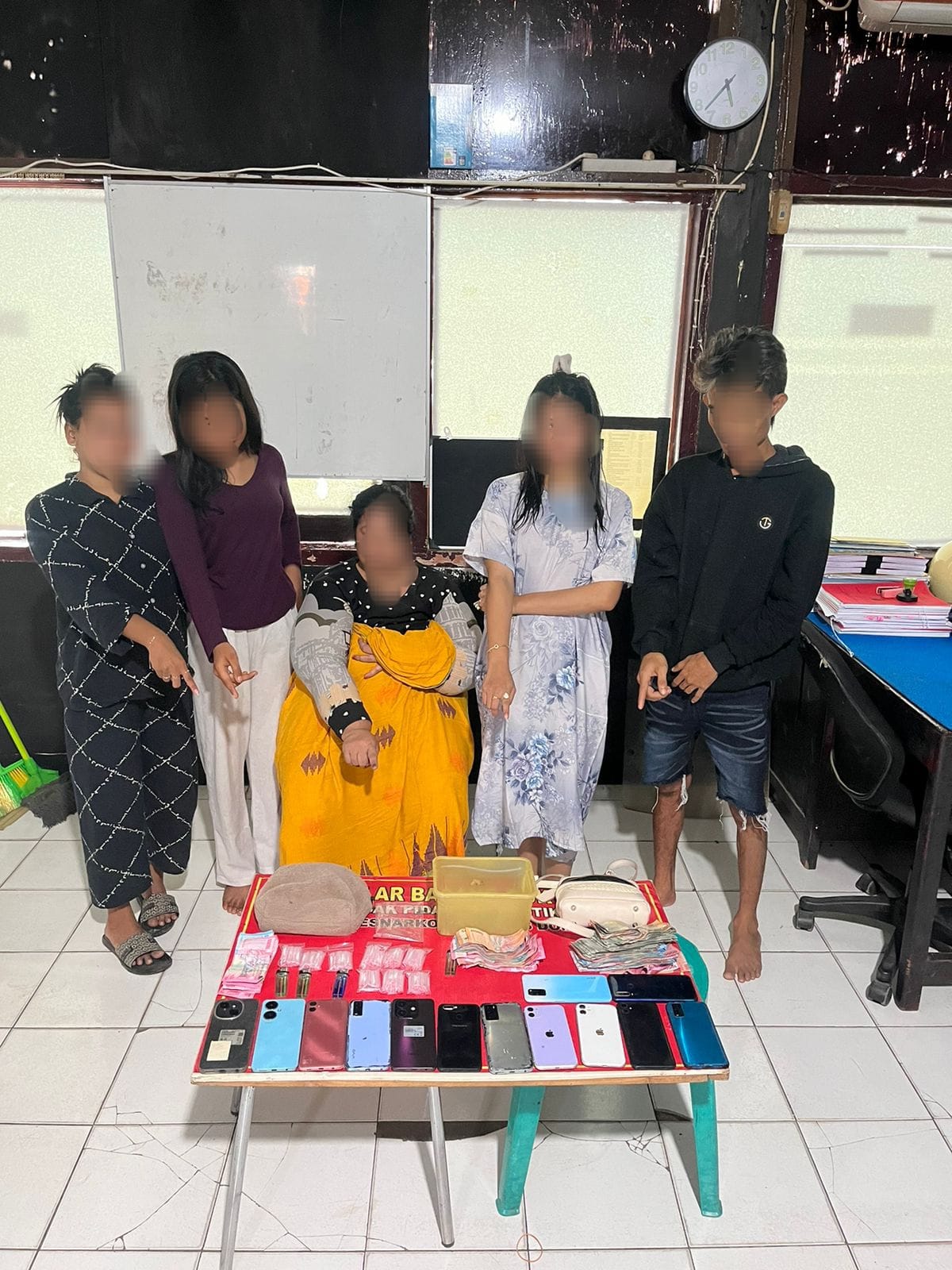 Kelima terduga pelaku yang diamankan terdiri dari empat perempuan dan satu laki-laki. Mereka adalah: