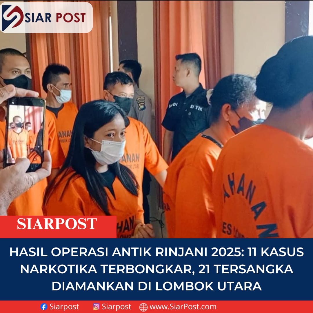 Lombok Utara, SIARPOST — Operasi Antik Rinjani 2025 yang digelar Polres Lombok Utara selama dua pekan membongkar fakta serius soal peredaran narkotika di wilayah ini. Dalam operasi yang berlangsung dari 1 hingga 14 Desember 2025, polisi mengungkap 11 kasus narkotika dengan total 21 orang tersangka, tiga di antaranya perempuan.