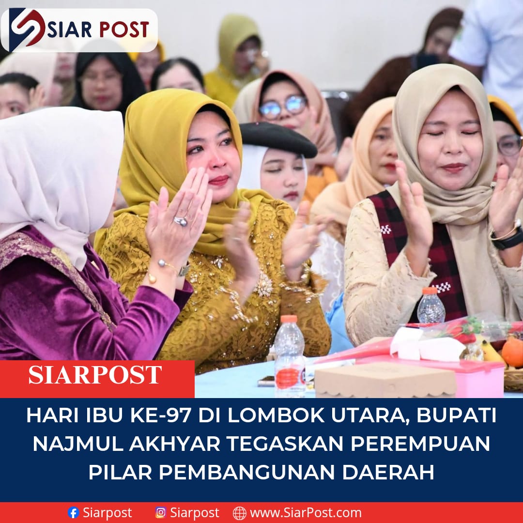Lombok Utara, SIARPOST— Peringatan Hari Ibu ke-97 di Kabupaten Lombok Utara (KLU) menjadi panggung penegasan peran strategis perempuan dalam pembangunan daerah. Momentum ini dimanfaatkan Bupati Lombok Utara, Dr. H. Najmul Akhyar, SH., MH, untuk mengajak seluruh elemen masyarakat memaknai Hari Ibu sebagai gerakan bersama dalam memperkuat pemberdayaan perempuan.