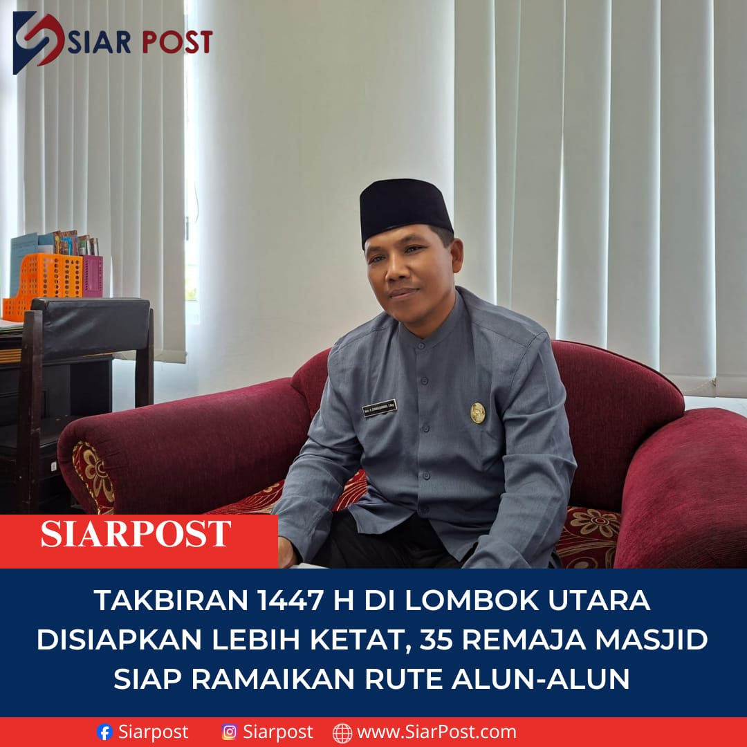 Lombok Utara,SIARPOST– Pemerintah Kabupaten Lombok Utara mulai mematangkan pelaksanaan Pawai Takbiran 1 Syawal 1447 Hijriah/2026 dengan sistem yang lebih terstruktur dan aturan yang diperketat. Sedikitnya 35 remaja masjid dari lima kecamatan sudah mengambil nomor peserta, dan jumlah itu diperkirakan masih akan bertambah.Kamis 28/2/2026