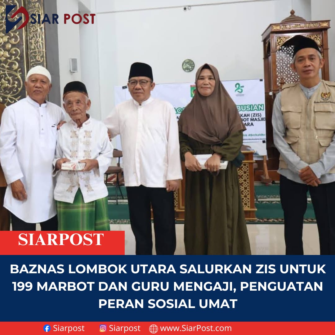 Lombok utara SIARPOST – Badan Amil Zakat Nasional (Baznas) Kabupaten Lombok Utara kembali menegaskan perannya sebagai lembaga pengelola zakat yang aktif dalam membantu masyarakat. Melalui program penyaluran Zakat, Infak, dan Sedekah (ZIS), Baznas menyalurkan bantuan kepada 199 marbot masjid dan guru mengaji di Islamic Center Masjid Baiturrahim, Tanjung, Senin (16/03/2026).