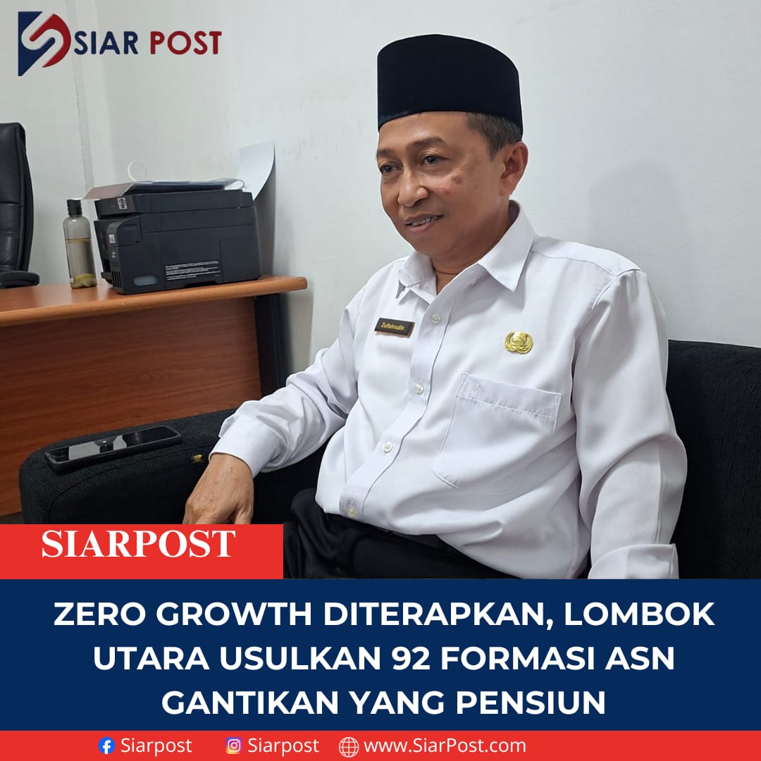 Lombok Utara,SIARPOST— Pemerintah Kabupaten Lombok Utara mengambil langkah realistis dalam menghadapi keterbatasan anggaran dengan mengusulkan formasi Aparatur Sipil Negara (ASN) tahun 2026 berbasis skema zero growth. Artinya, jumlah pegawai baru yang diajukan tidak akan melebihi jumlah ASN yang keluar akibat pensiun, meninggal dunia, atau mengundurkan diri.