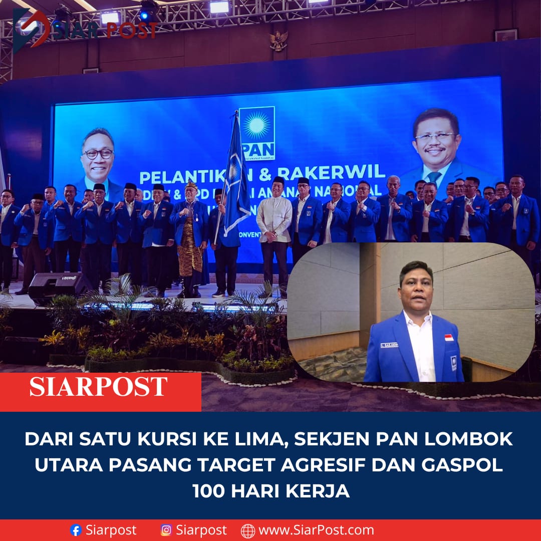 Lombok Utara,SIARPOST – Baru saja dilantik langsung oleh Ketua Umum PAN, Zulkifli Hasan, kepengurusan DPD PAN Lombok Utara periode 2025–2029 langsung tancap gas. Sekretaris Jenderal terpilih, Lalu Saejudin, tak ingin momentum pelantikan hanya berakhir sebagai seremoni melainkan dijadikan titik awal konsolidasi besar-besaran. Jum’at, 17/26.